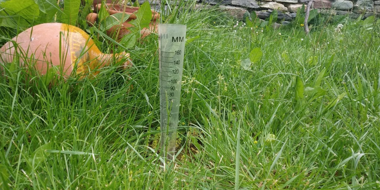 Обмисляме да закупим контейнери за дъждовна вода, която евентуално да ползваме за поливане през лятото. Реших да започна с измерване на количествата дъжд, за да мога да изчисля приблизителен обем на съдовете и тяхното позициониране.