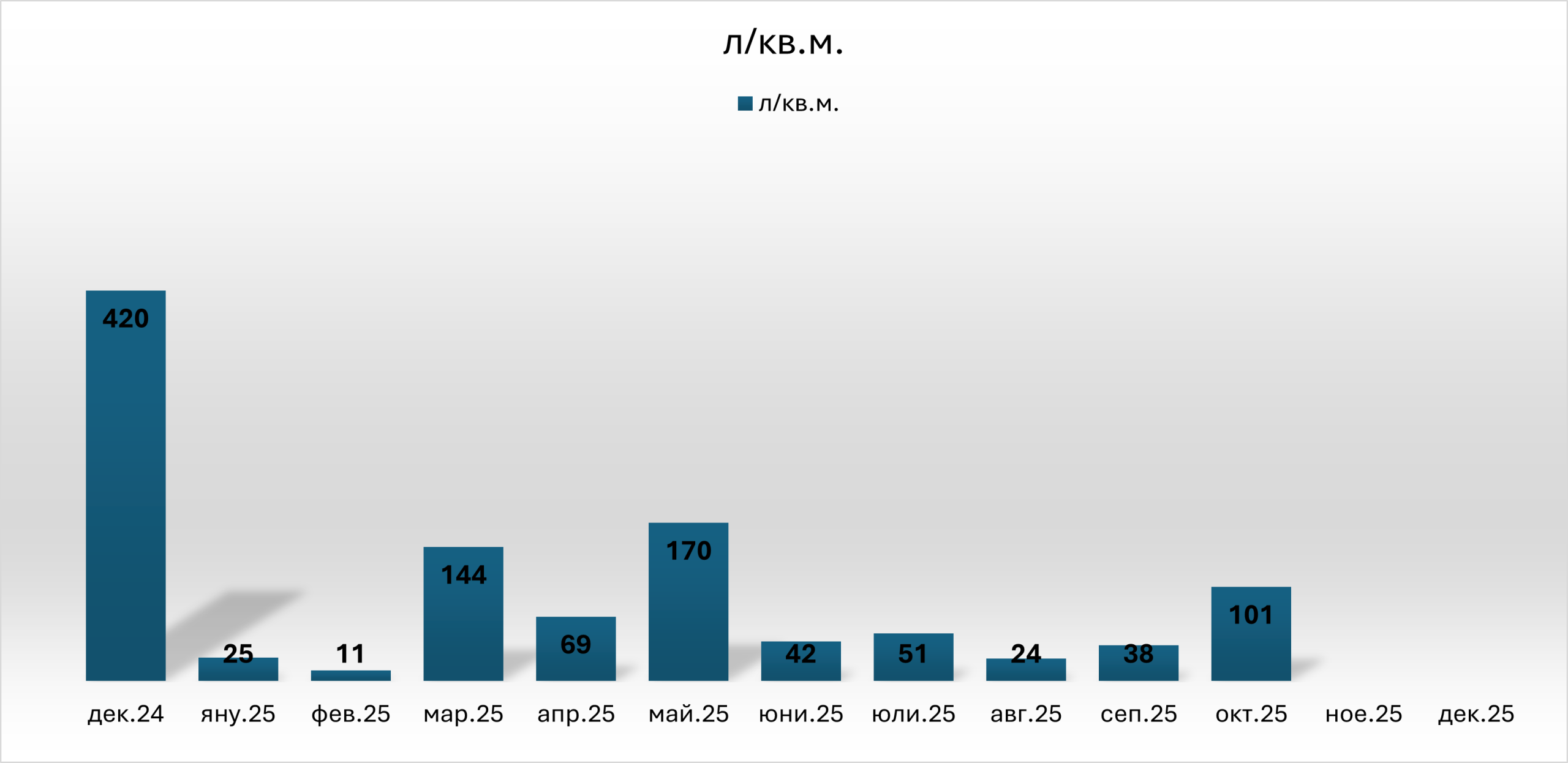 | Януари 2025 | Общо 25л/кв.м. | Общо 0,025м3 вода на кв. м. |